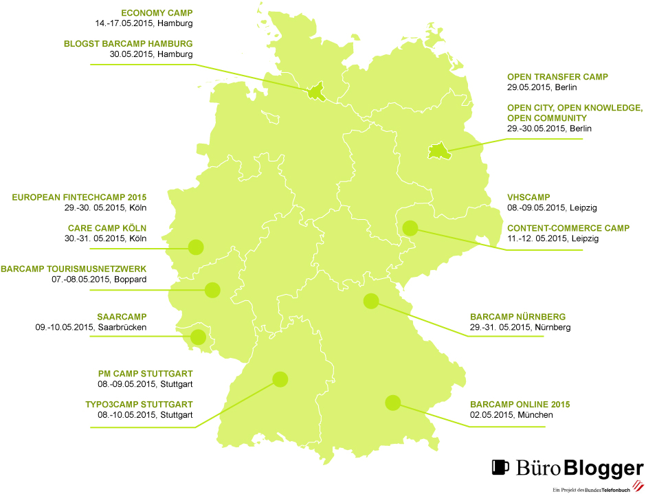 Alle Barcamps in Deutschland im Mai 2015 mit großer Karte