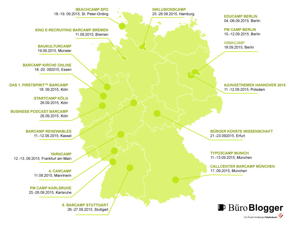 Alle Barcamps in Deutschland im September 2015 mit großer Karte.